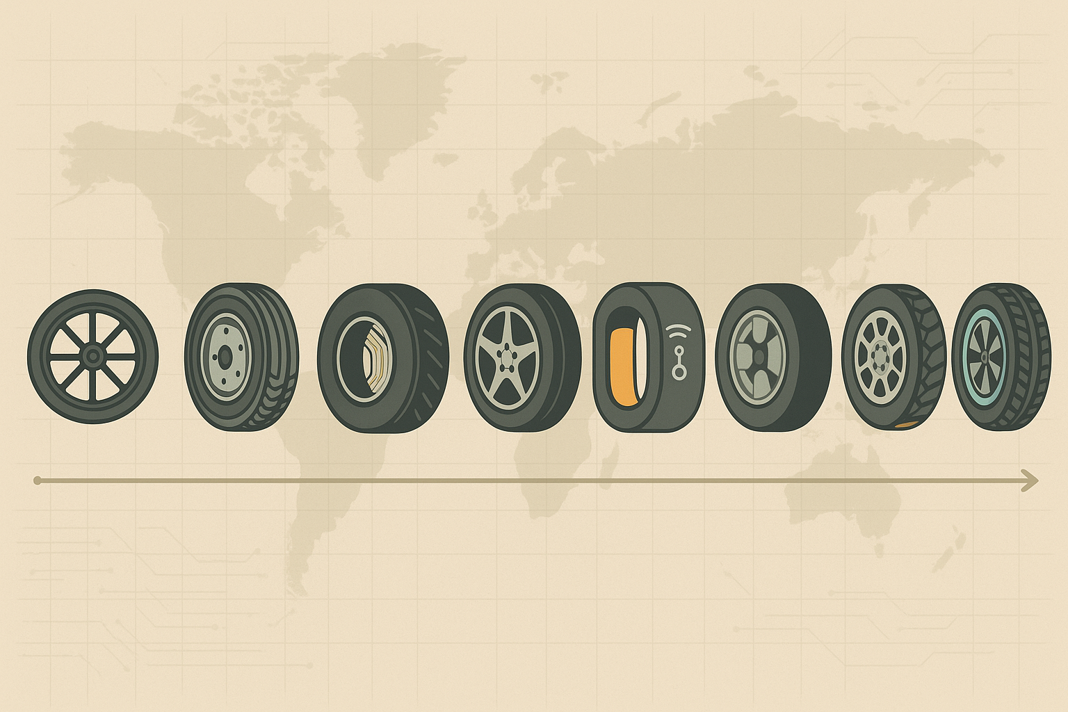 자동차가 도로와 만나는 유일한 접점은 타이어의 손바닥만 한 접지면입니다. 목재·철제 바퀴와 솔리드 고무를 지나, 19세기 말 공기주입식(튜브)·20세기 중반 레이디얼의 대전환, 강철 스틸휠에서 알루미늄·마그네슘·카본 휠, 저편평비·런플랫·튜브리스·TPMS·EV 전용 타이어까지—휠·타이어의 역사는 ‘접지·구름저항·내구·NVH’의 최적점을 찾아온 과정입니다. 이 글은 역사·구조·유지관리·규격·튜닝, 그리고 공기 없는 타이어·스마트 센싱·지속가능 재료·액티브 에어로 휠 등 미래 흐름을 연대기와 사용 시나리오로 정리했습니다.